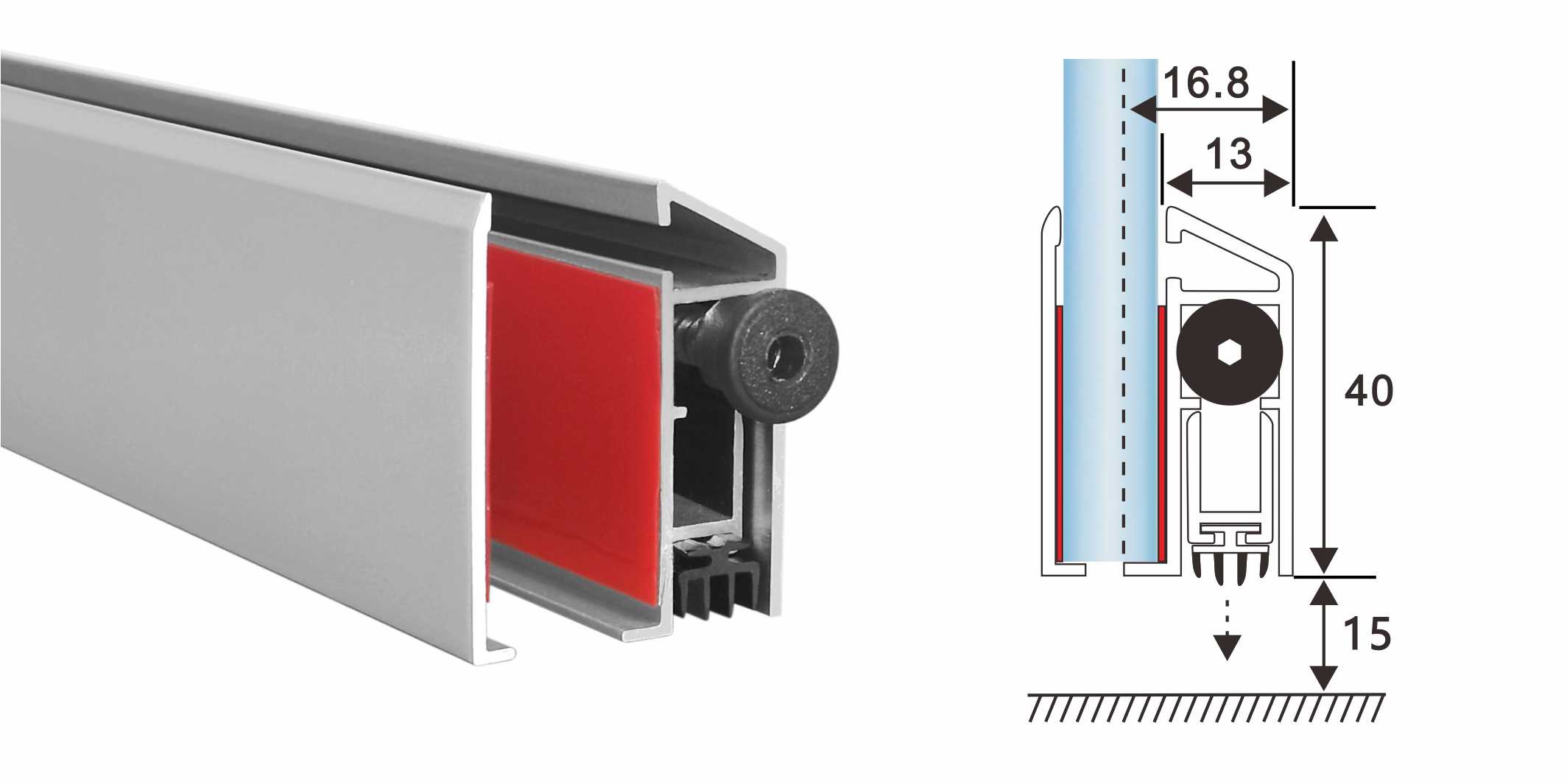 為平開純玻璃門,鋁合金窗框玻璃門,不銹鋼框玻璃門,木框玻璃門特別設(shè)計(jì)的門底自動升降式密封器。附件配套齊全,能適應(yīng)有門框或無門框的玻璃門。帶磨砂表面的正面和背面的鋁合金裝飾條,產(chǎn)品表面無螺絲,平整美觀。