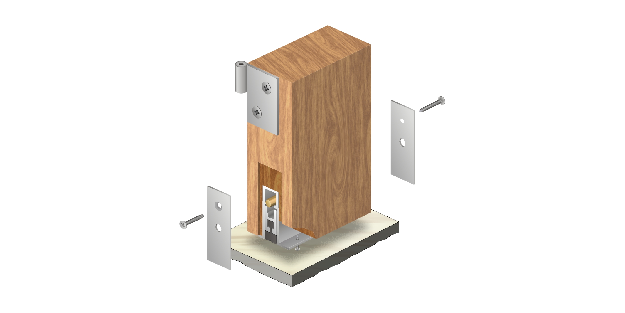 嵌入式門(mén)底自動(dòng)升降式密封器,M型彈簧結(jié)構(gòu),適用于門(mén)扇內(nèi)開(kāi)槽的門(mén)。安裝時(shí)需在門(mén)底有一個(gè)38mm*13.5mm的通槽,將產(chǎn)品放置其中,從產(chǎn)品的翼上固定,并將裝飾端蓋板用螺絲裝上,使用本產(chǎn)品不影響門(mén)的整體風(fēng)格。